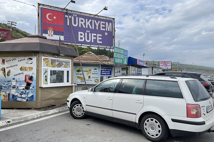 トルコ国旗の下にセルビア国旗を描いているのは、セルビアでは他国の国旗を単独で掲げて営業することが禁止(*) されているため、セルビアの国旗を並べて「多国籍商品を扱う」ていにしている。(客は殆どトルコ人)