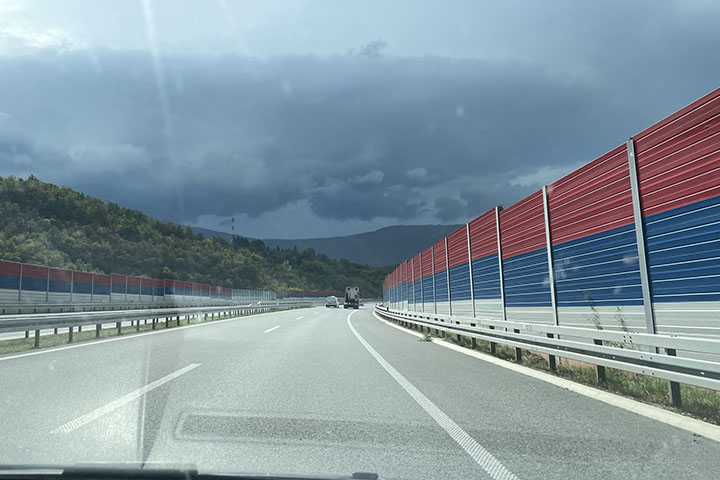 本線に戻ると、「ここはセルビアだ!」と言わんばかりの、赤・青・白の防音壁が続く。