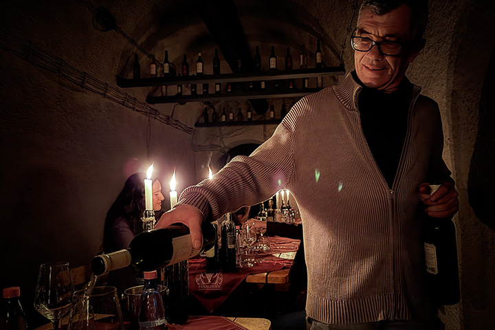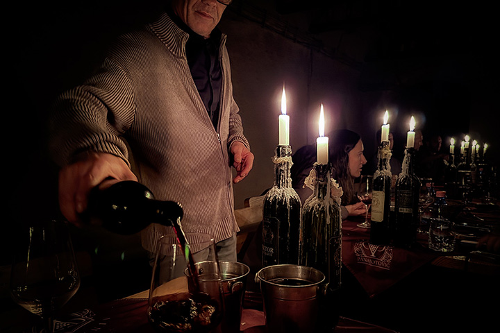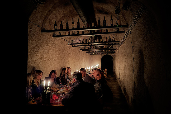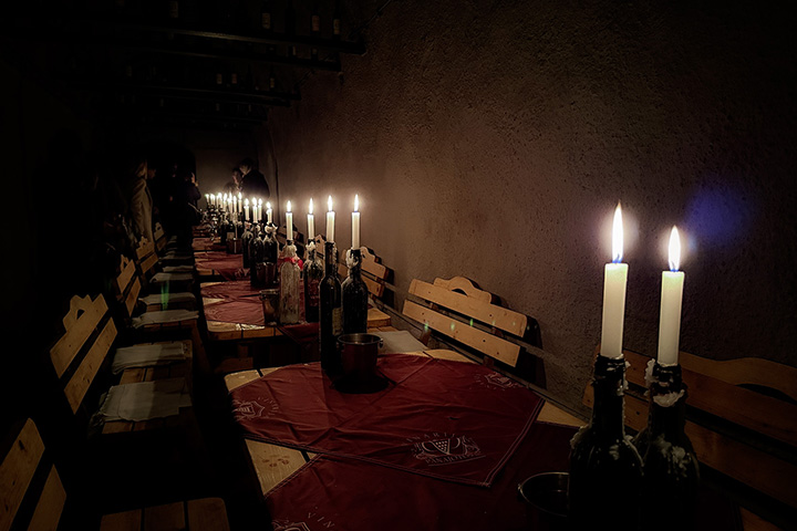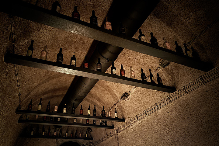 第二次世界大戦前に造られた地下トンネルを活用し、今も伝統的な手法でワインを熟成しています。